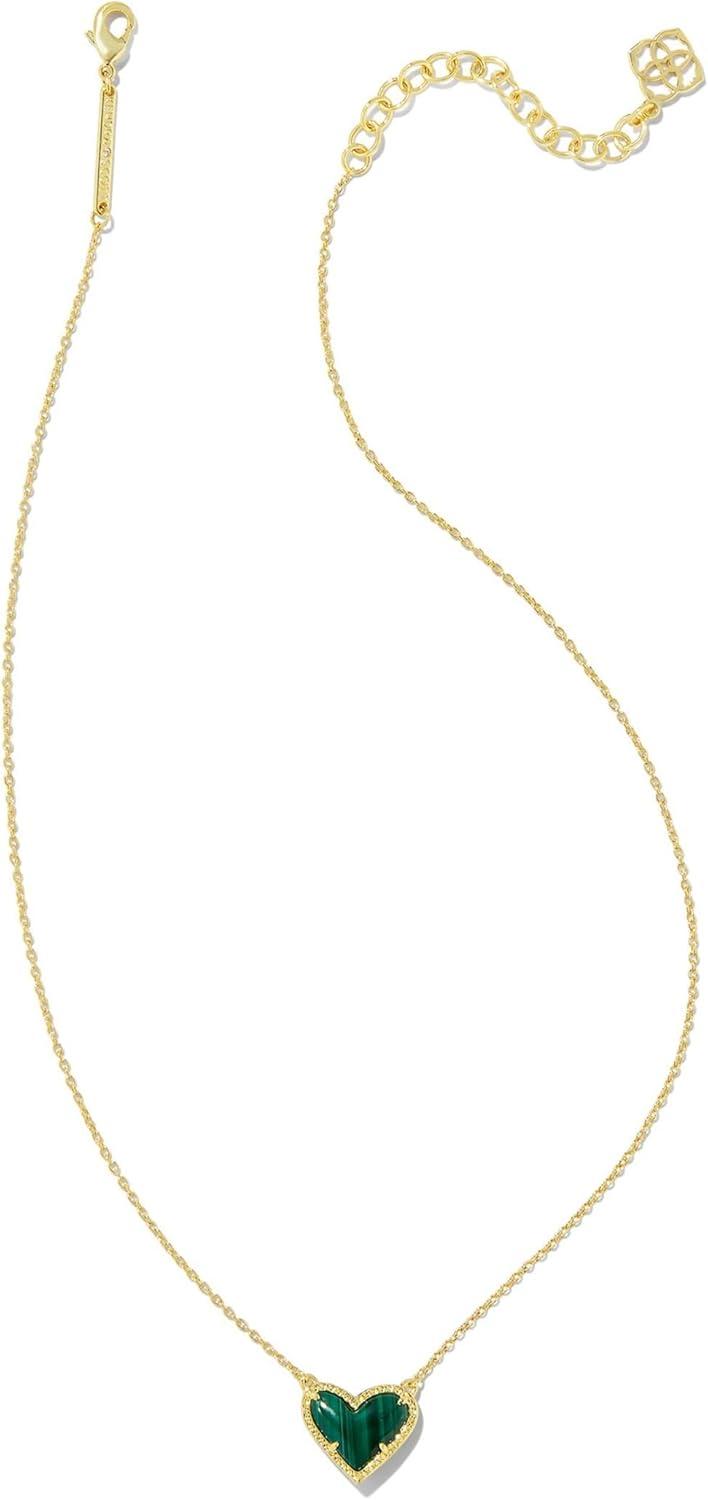 Kendra Scott Ari Heart Adjustable Length Pendant Necklace for Women, Fashion Jewelry(Gold Green Malachite)