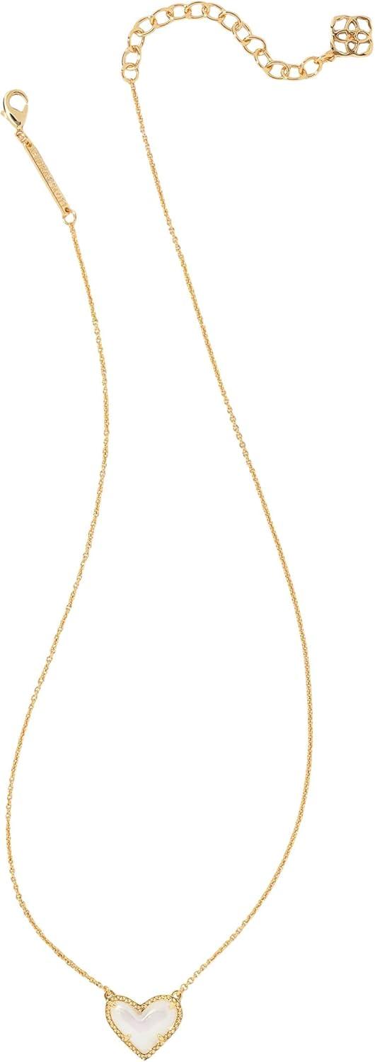 Kendra Scott Ari Heart Adjustable Length Pendant Necklace for Women, Fashion Jewelry(Gold White Opal)