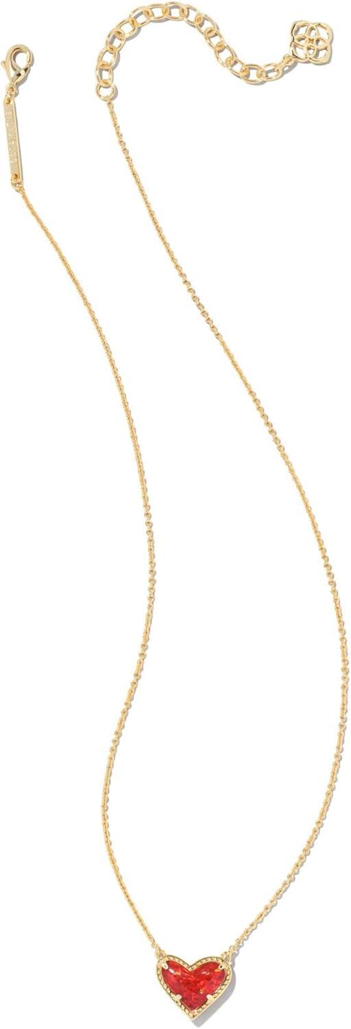 Kendra Scott Ari Heart Adjustable Length Pendant Necklace for Women, Fashion Jewelry(Gold Red Kyocera Opal)