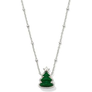 Kendra Scott Holiday Tree Short Pendant Necklace, Green Quartzite, Rhodium-Plated Brass, Fashion Jewelry for Women