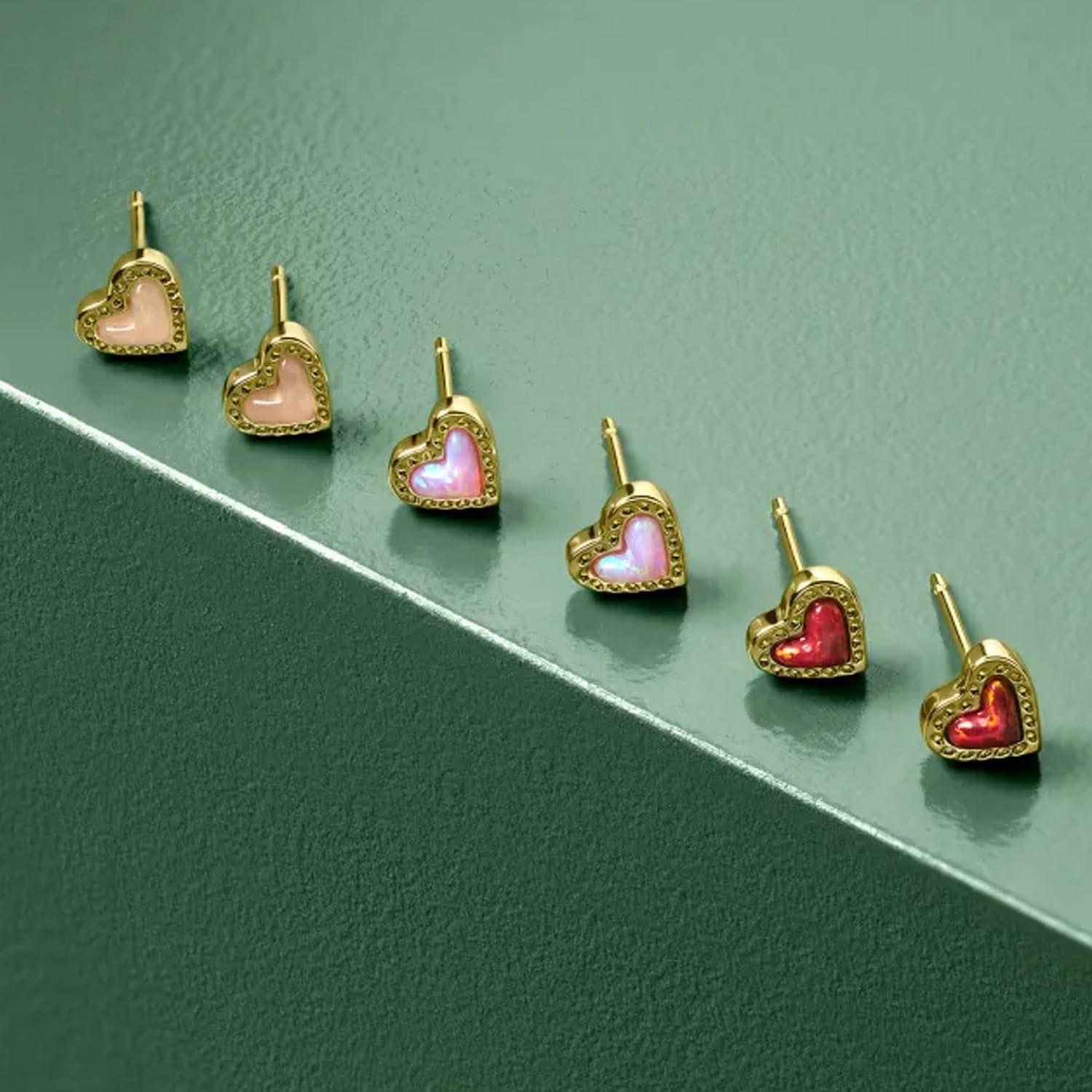 Kendra Scott Mini Ari Heart Stud Earring, Fashion Jewelry for Women(GOLD – BUBBLEGUM PINK OPAL)