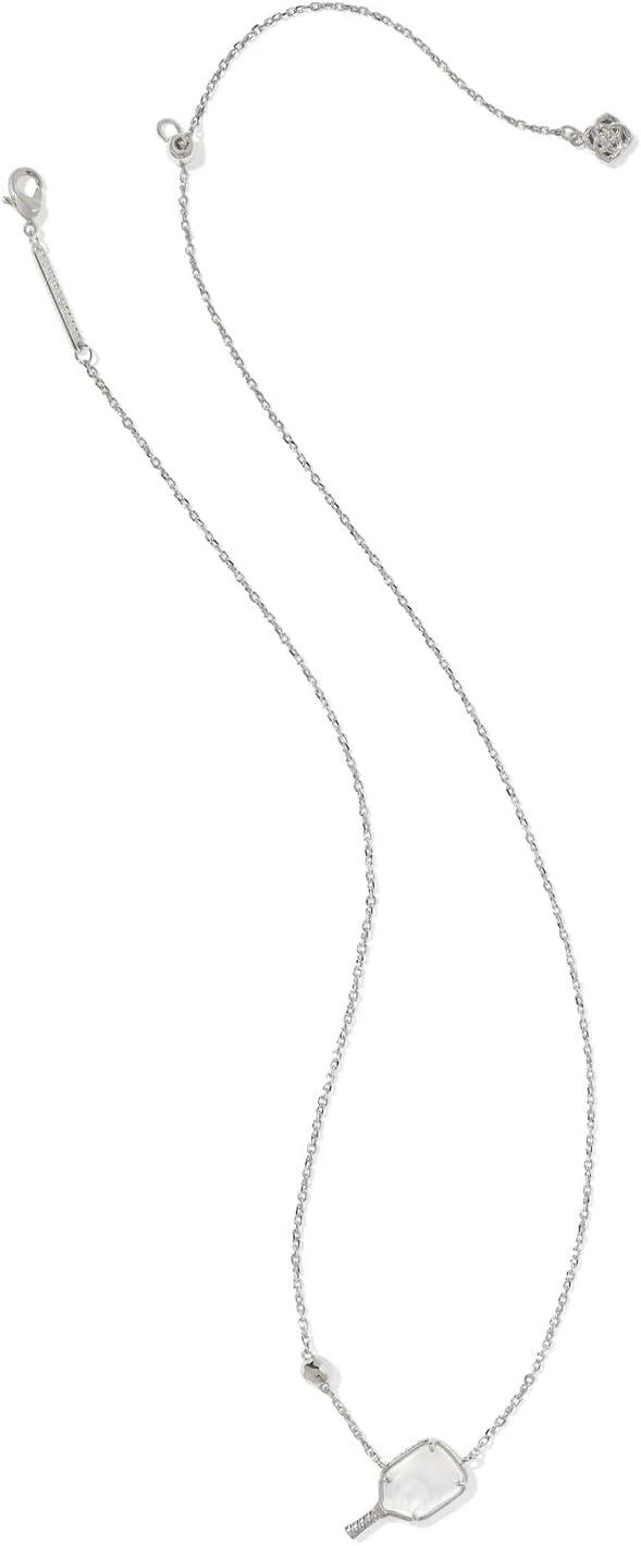 Kendra Scott Pickleball Short Pendant Necklace, Fashion Jewelry for Women(RHODIUM – IVORY MOTHER OF PEARL)