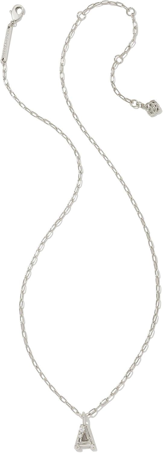 Kendra Scott Crystal Letter Short Pendant Necklace, Fashion Jewelry for Women(Letter A (RHODIUM-PLATED))