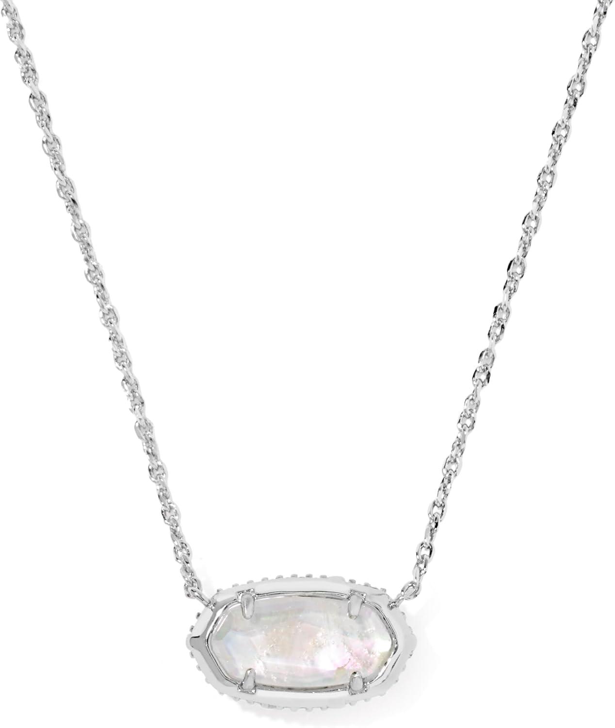 Kendra Scott Elisa Bow Short Pendant Necklace, Fashion Jewelry for Women(RHODIUM – IRIDESCENT CRYSTAL IVORY ILLUSION)