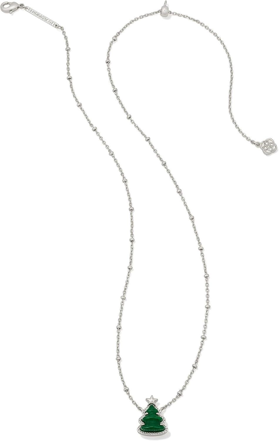 Kendra Scott Holiday Tree Short Pendant Necklace, Green Quartzite, Rhodium-Plated Brass, Fashion Jewelry for Women
