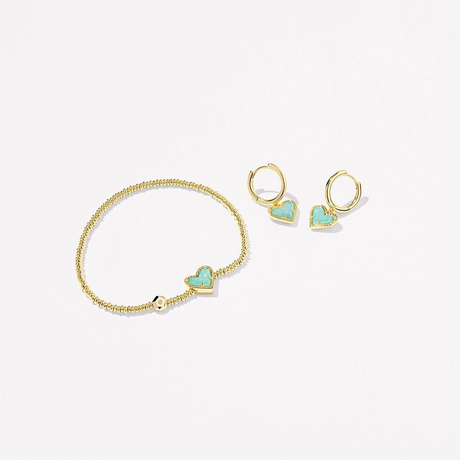 Kendra Scott Ari Heart Huggie Earrings for Women, Fashion Jewelry(GOLD – TURQUOISE)