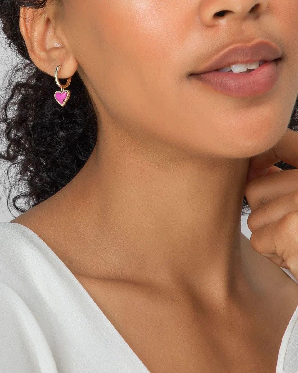 Kendra Scott Ari Heart Huggie Earrings for Women, Fashion Jewelry(GOLD – MAGENTA)