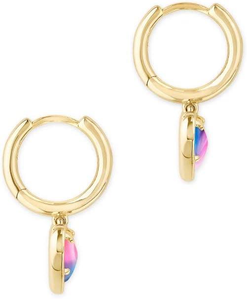 Kendra Scott Ari Heart Huggie Earrings for Women, Fashion Jewelry(GOLD – IRIDESCENT DICHROIC GLASS)