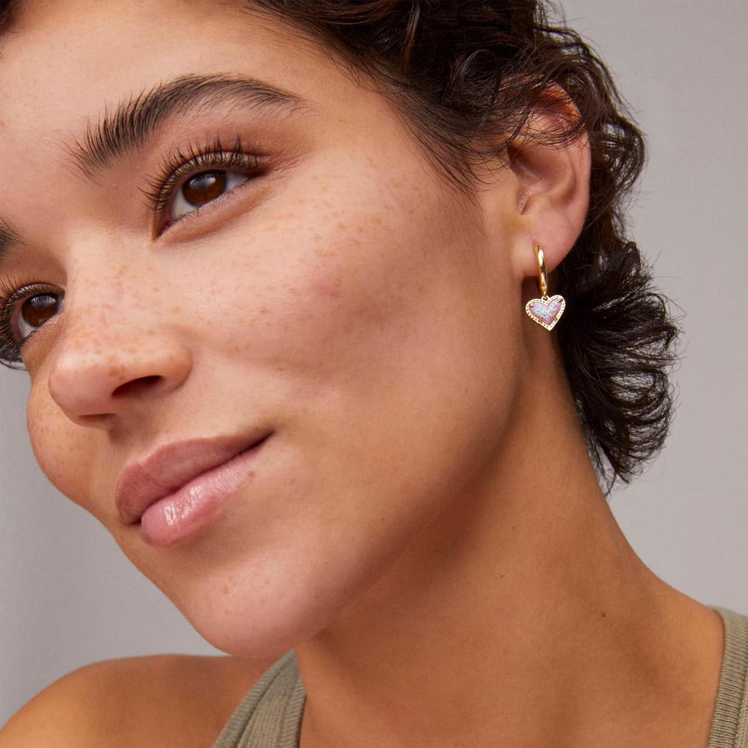 Kendra Scott Ari Heart Huggie Earrings for Women, Fashion Jewelry(GOLD – BUBBLEGUM PINK OPAL)