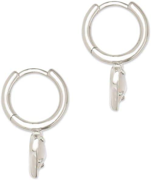 Kendra Scott Ari Heart Huggie Earrings for Women, Fashion Jewelry(RHODIUM – IVORY MOTHER OF PEARL)