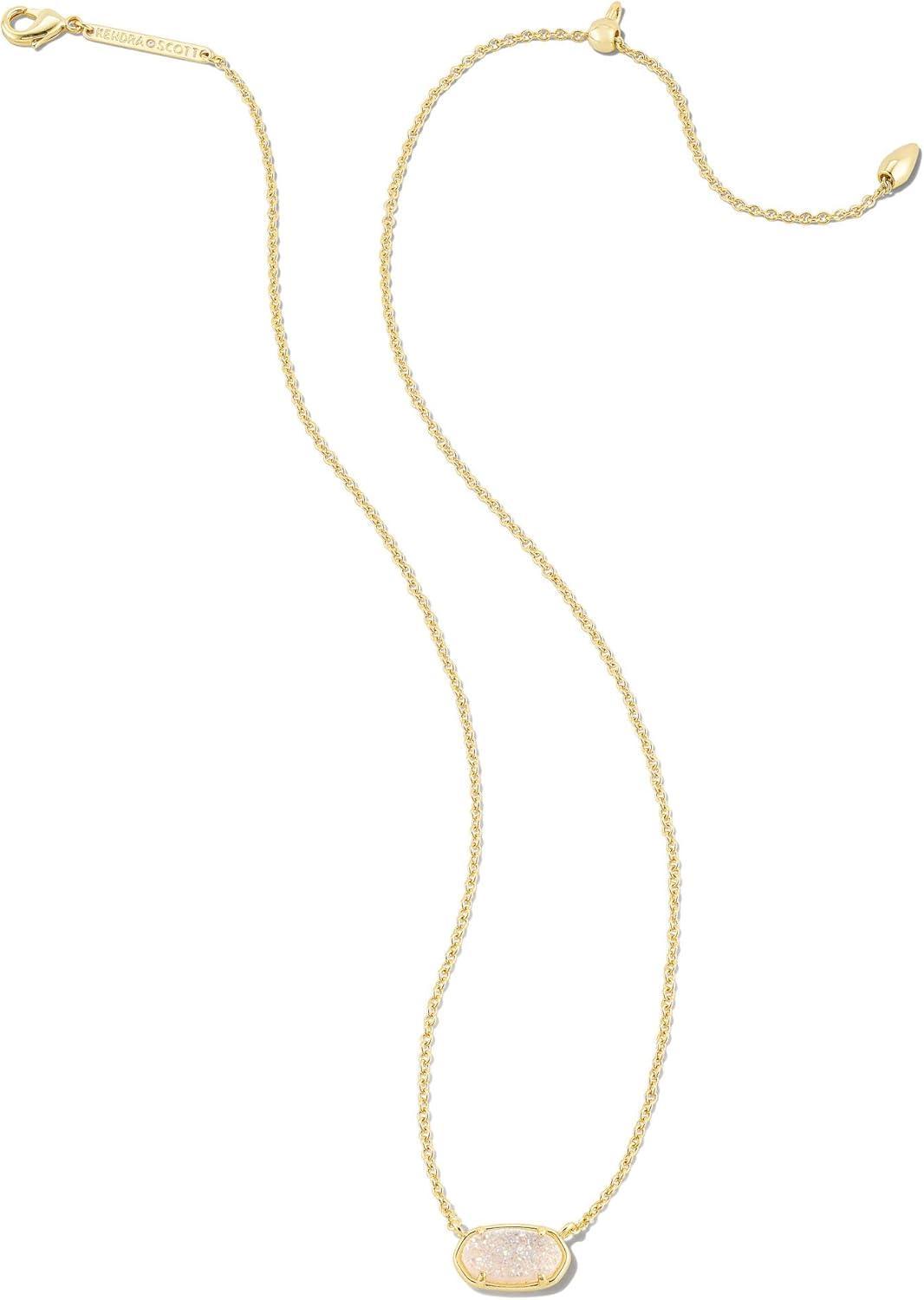 • Kendra Scott® Grayson Stone Pendant Necklace – Brass Construction – 14K Gold Plating – Lobster Clasp(GOLD – IRIDESCENT DRUSY)