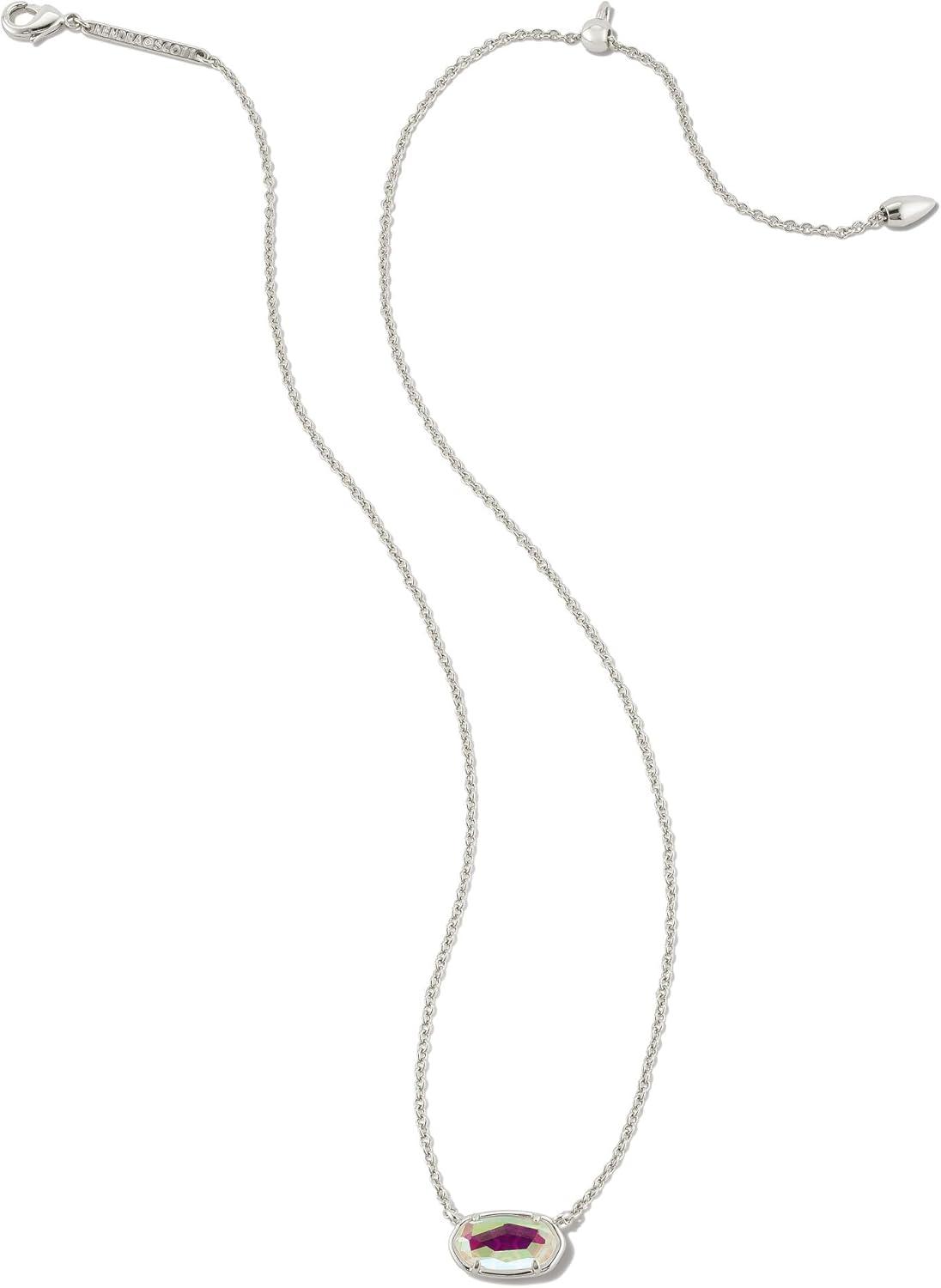 Kendra Scott® Grayson Stone Pendant Necklace – Brass Construction – 14K Gold Plating – Lobster Clasp(RHODIUM – DICHROIC GLASS)