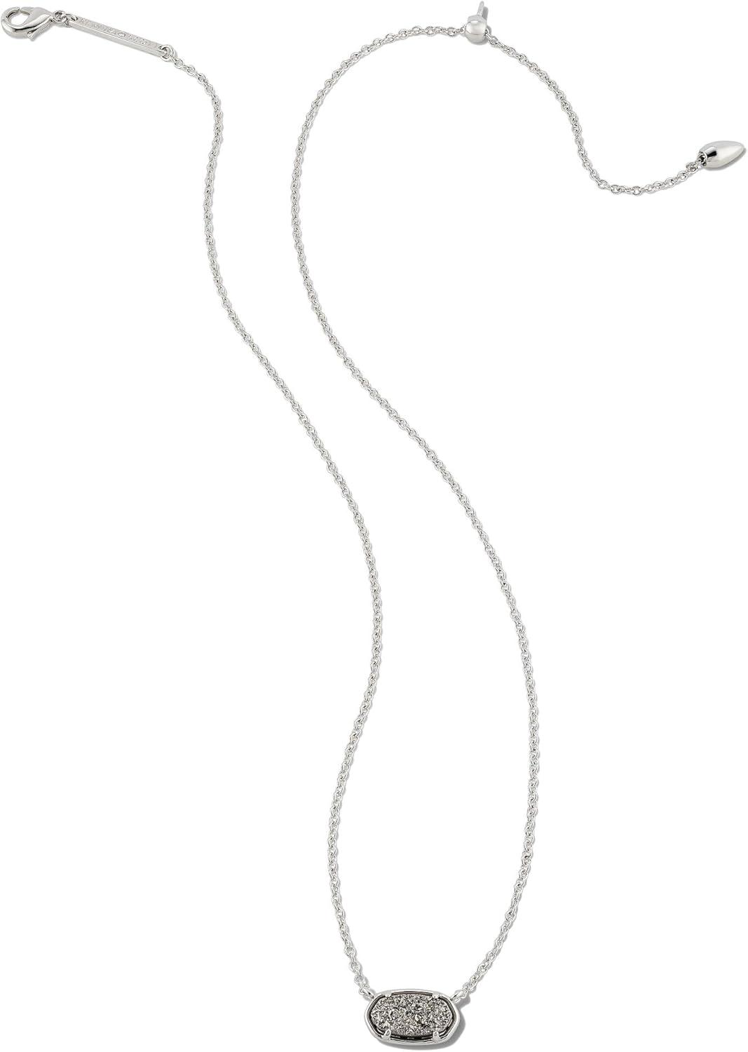 Kendra Scott® Grayson Stone Pendant Necklace – Brass Construction – 14K Gold Plating – Lobster Clasp(RHODIUM – PLATINUM DRUSY)