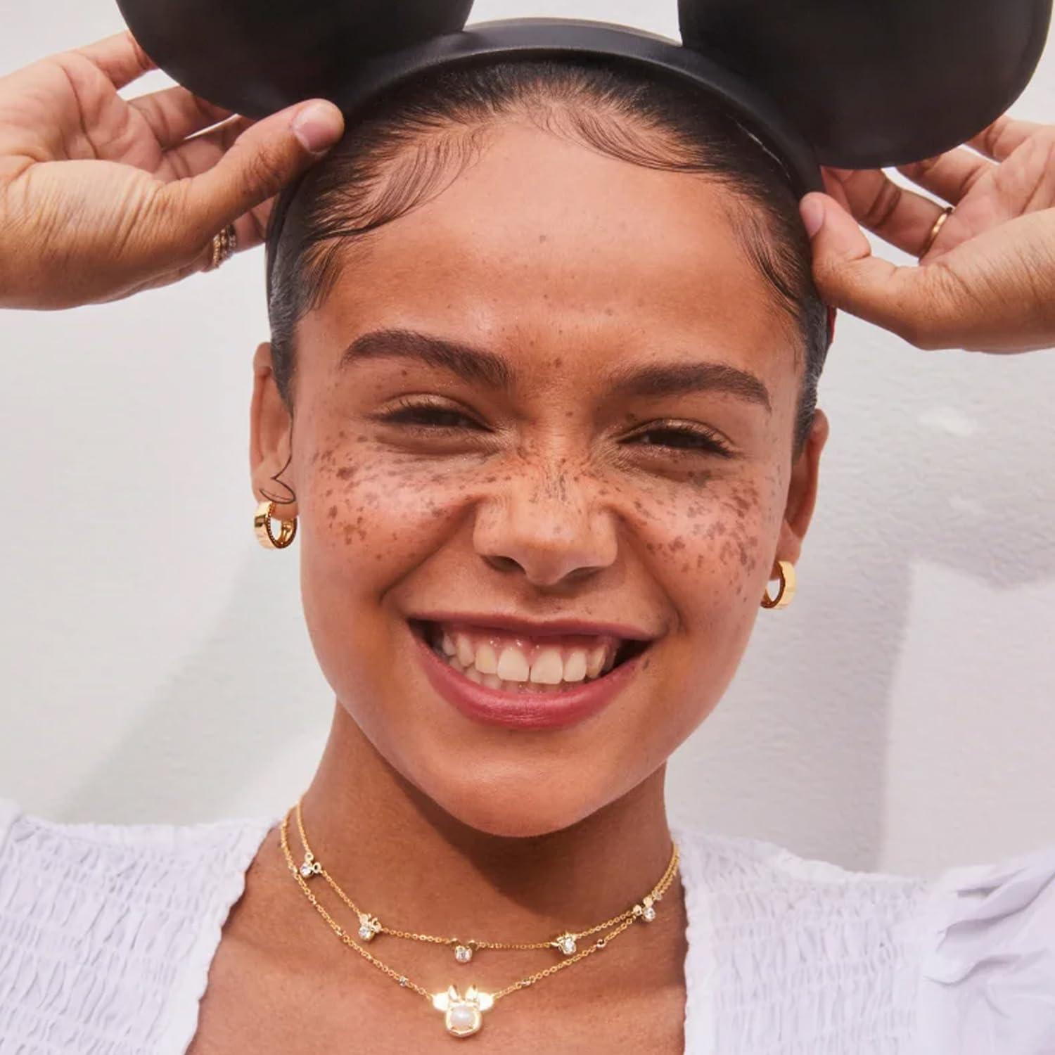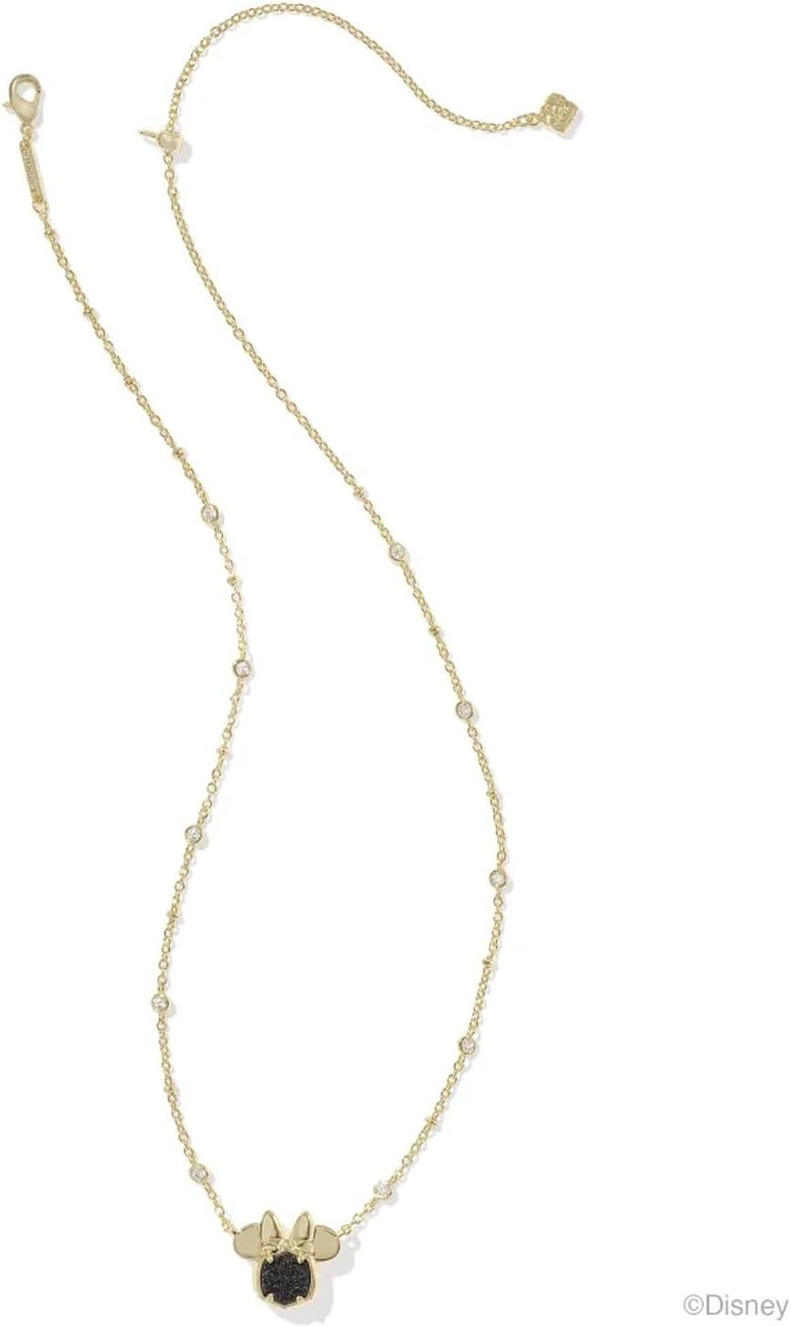 • Kendra Scott x Disney Minnie Mouse Short Pendant Necklace, Fashion Jewelry for Women(GOLD – BLACK DRUSY)