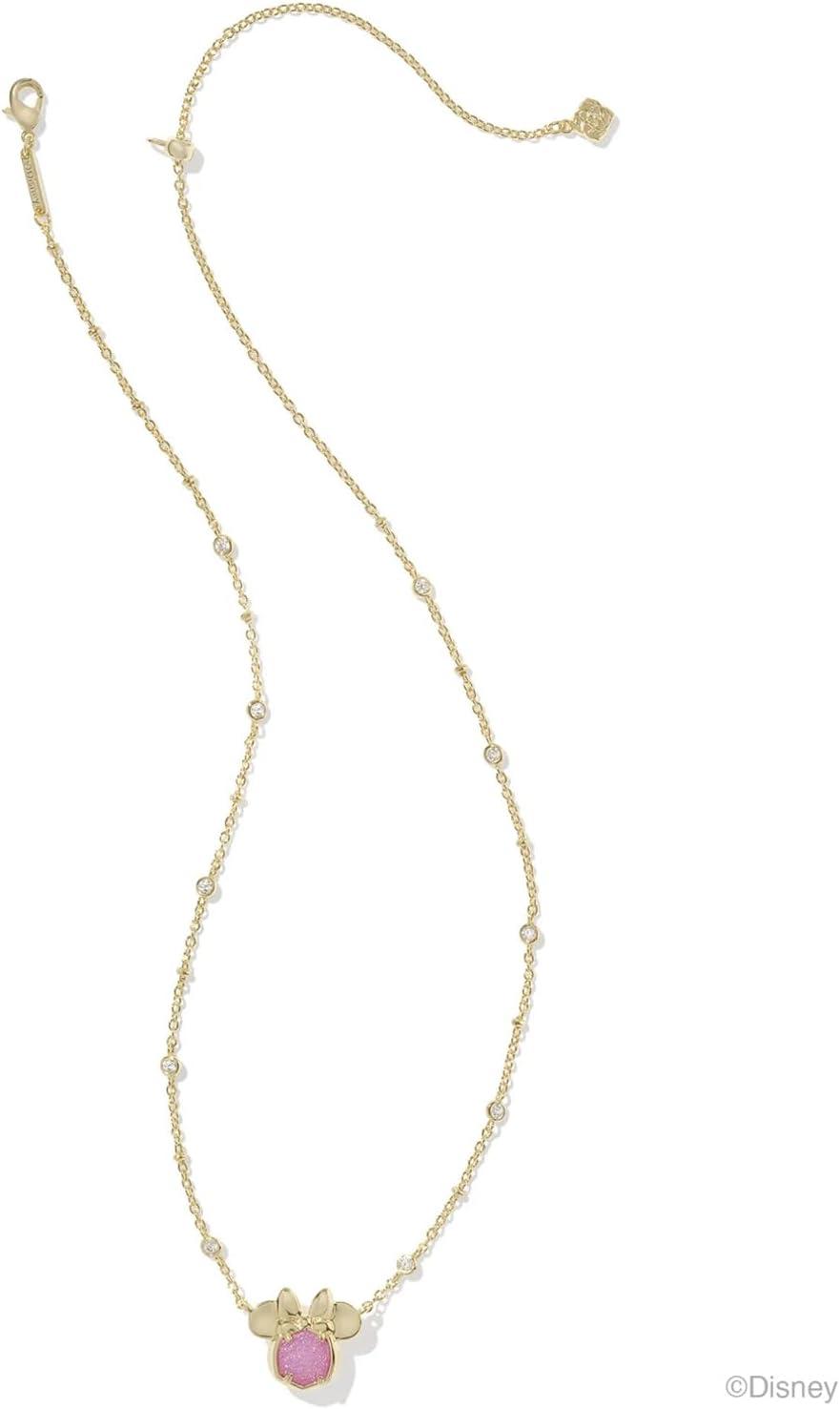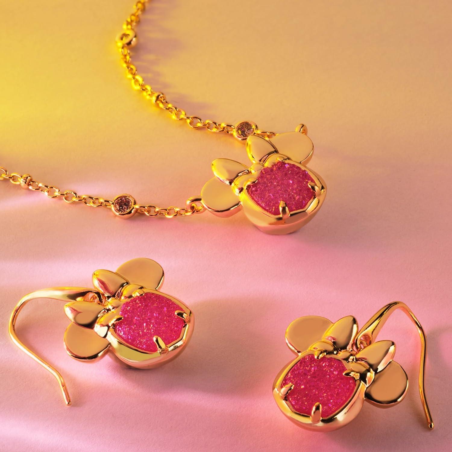 • Kendra Scott x Disney Minnie Mouse Short Pendant Necklace, Fashion Jewelry for Women(GOLD – HOT PINK DRUSY)