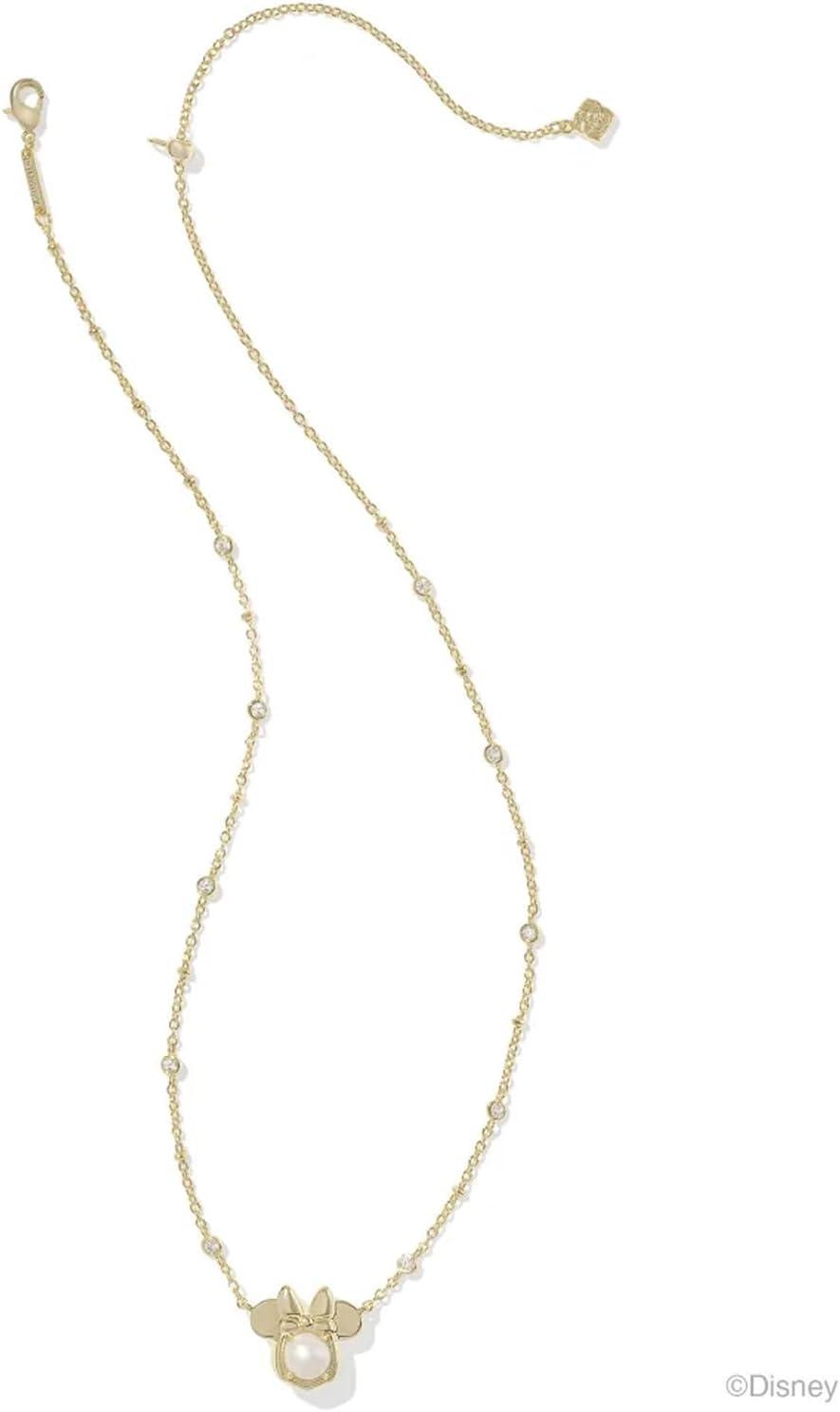 • Kendra Scott x Disney Minnie Mouse Short Pendant Necklace, Fashion Jewelry for Women(GOLD – WHITE PEARL)