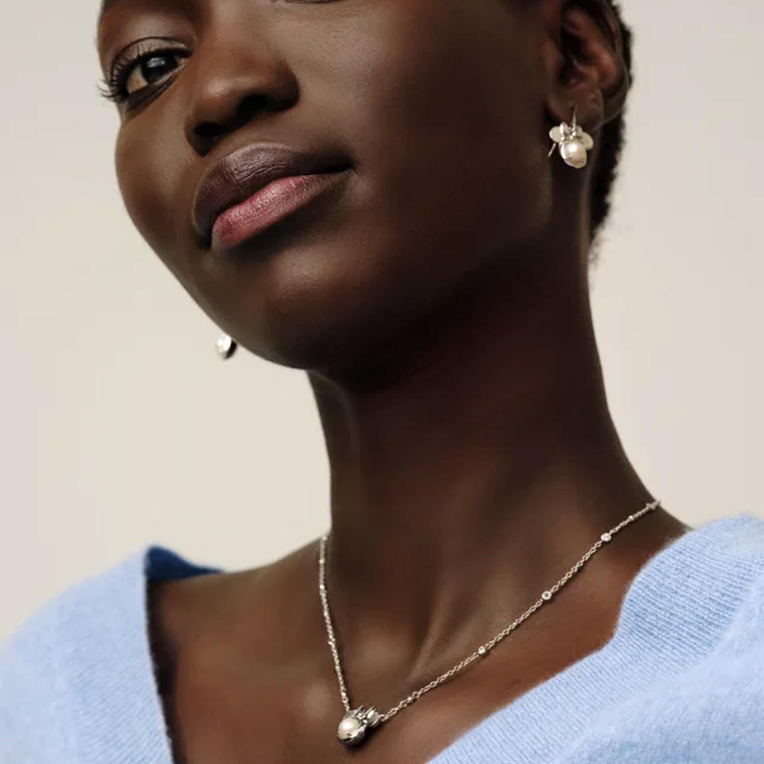 Kendra Scott x Disney Minnie Mouse Short Pendant Necklace, Fashion Jewelry for Women(RHODIUM – WHITE PEARL)